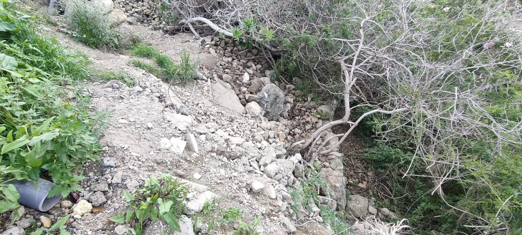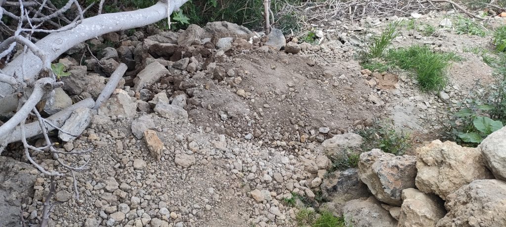 Hier steh ich auf einem Pfad, der durch hunderte Kübel Schutt aufgefüllt wurde.