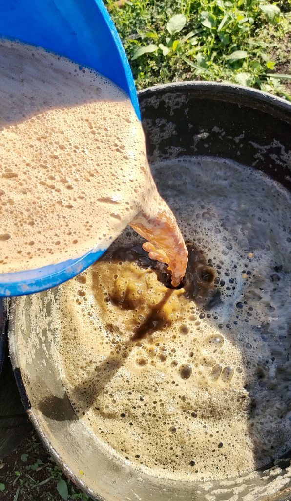 Das Gane wird nochmal mit der letzten Jauche aufgemischt.