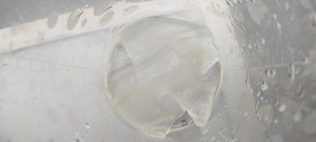 Dabei läuft das gelbe, ungesunde „Latex“ aus, wie ich ebenfalls im Internet gelernt hab. Das Wasser wurde sogar mehrmals gewechselt.