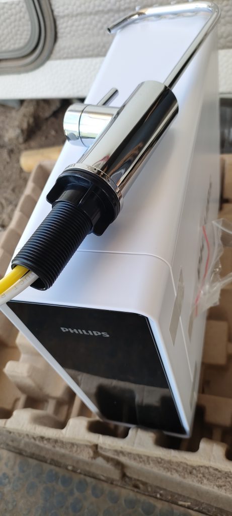 Für 90€ mehr, entschied ich mich für eine Osmose Anlage von Phillips, die direkt in Echtzeit filtert: