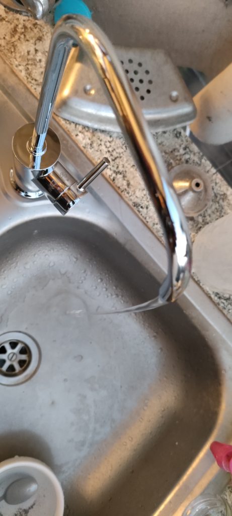 In meiner Spüle war eh noch ein Loch frei, weil mein Finca Wasserhahn zum Spülen, von oben kommt. Mit meinen fetten Leitungen, musste ich schnell eine Menge Adapter und Anschlüsse zusammen stellen, weil die Zeit für Geza limitiert war, der sich um meine Bimba gekümmert hat!