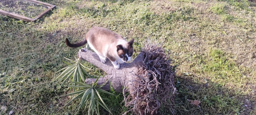 Erst hackte ich sie mit dem Buschmesser auf die richtige Höhe.