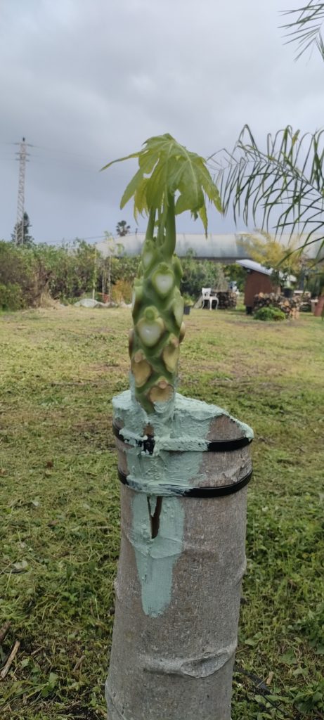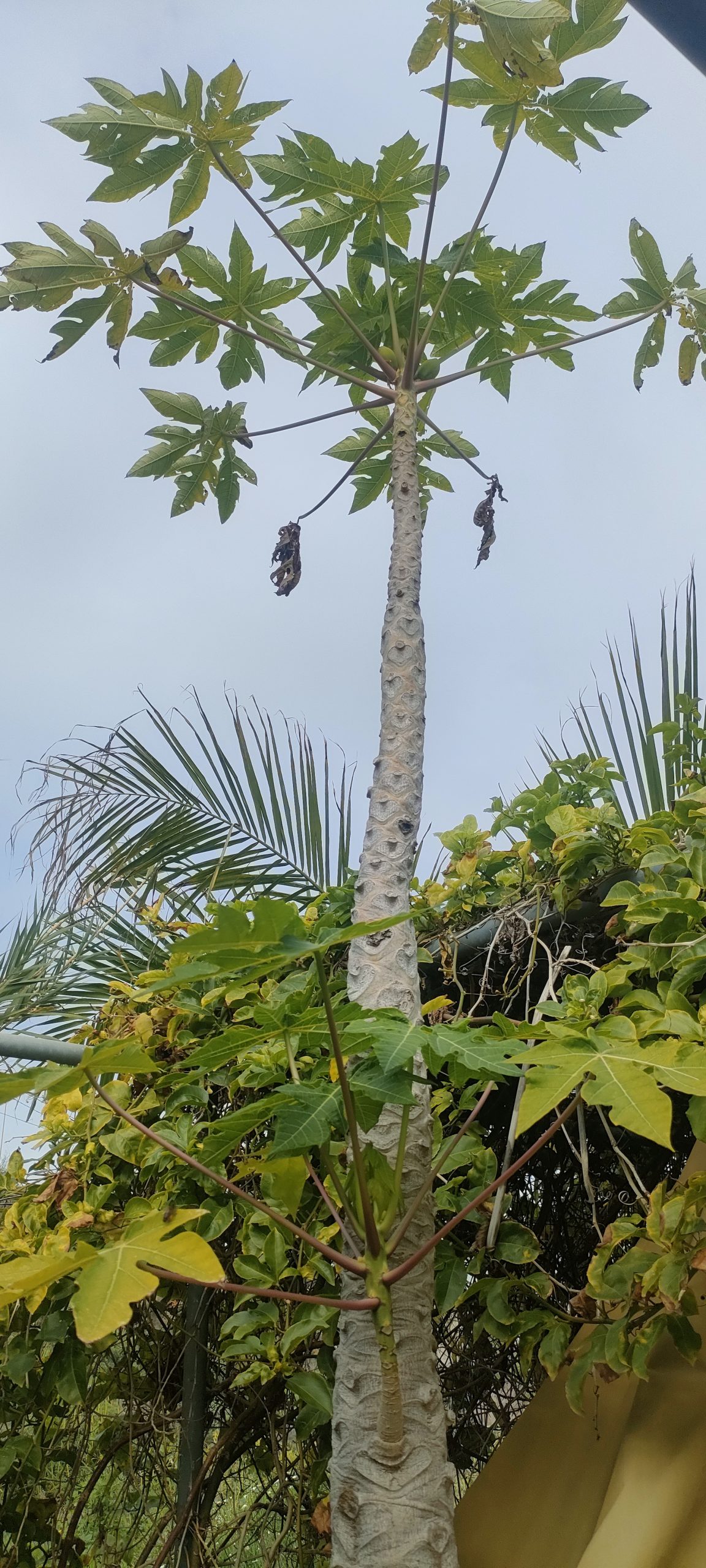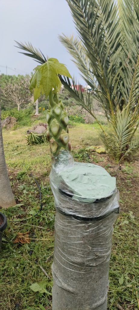 Neben meiner lieblings Papaya, steht noch eine, die ich bereits fällen wollte, weil sie schlechte Früchte trägt! Sonnenbrand und Schimmel, bevor sie reif waren.