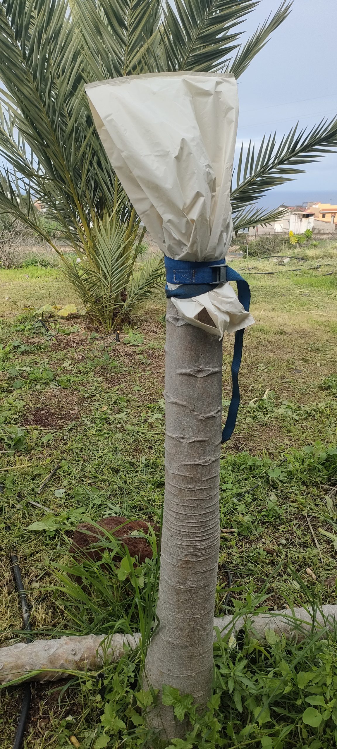 Eine Tüte mit Spanngurten, dass ich öfter reinschauen kann. Gegen übermäßige Verdunstung und als Sonnenschutz.