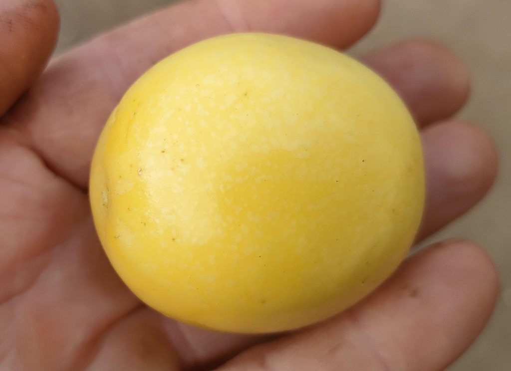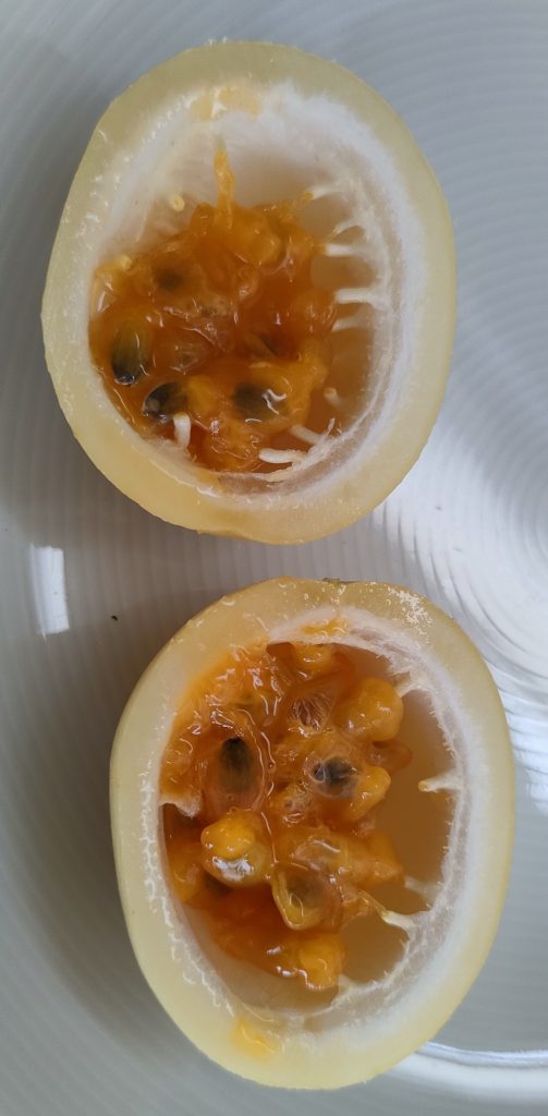 Beim Hühnerstall, konnte sich neben der Panama Red, noch eine weitere Sorte durchsetzen. Gestern probierte ich die erste, deutlich kleinere Frucht.