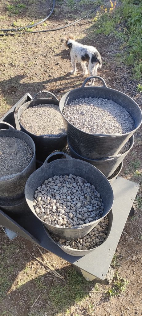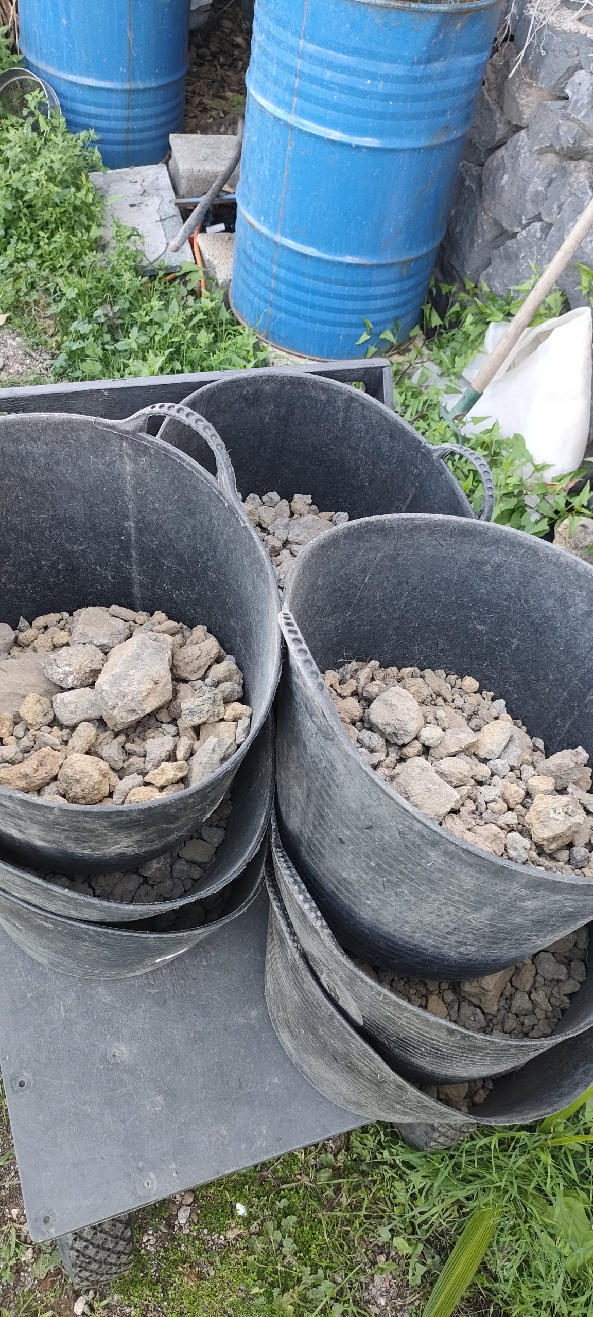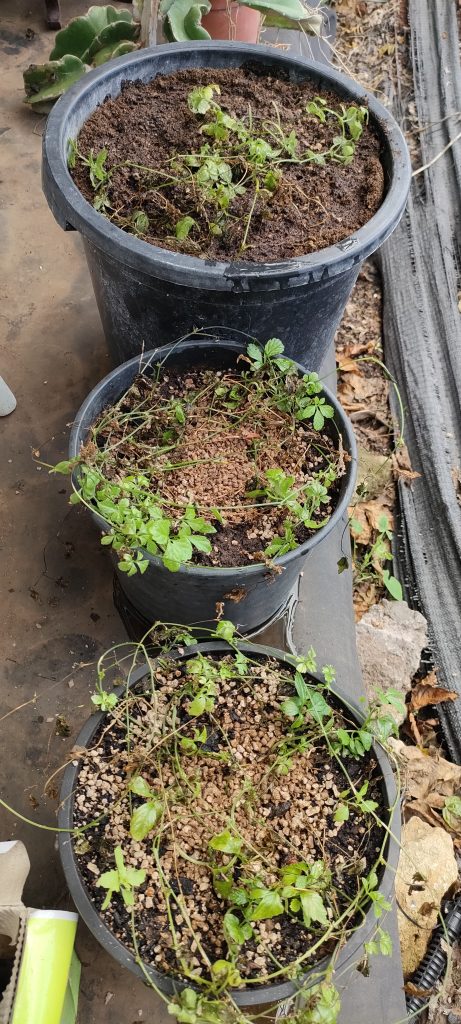 Eine Zweite hat jetzt einen fetten Topf mit Torf und dem neuen Ökodünger. Andere bekommen nur Dünger, bis sie and der Reihe sind.