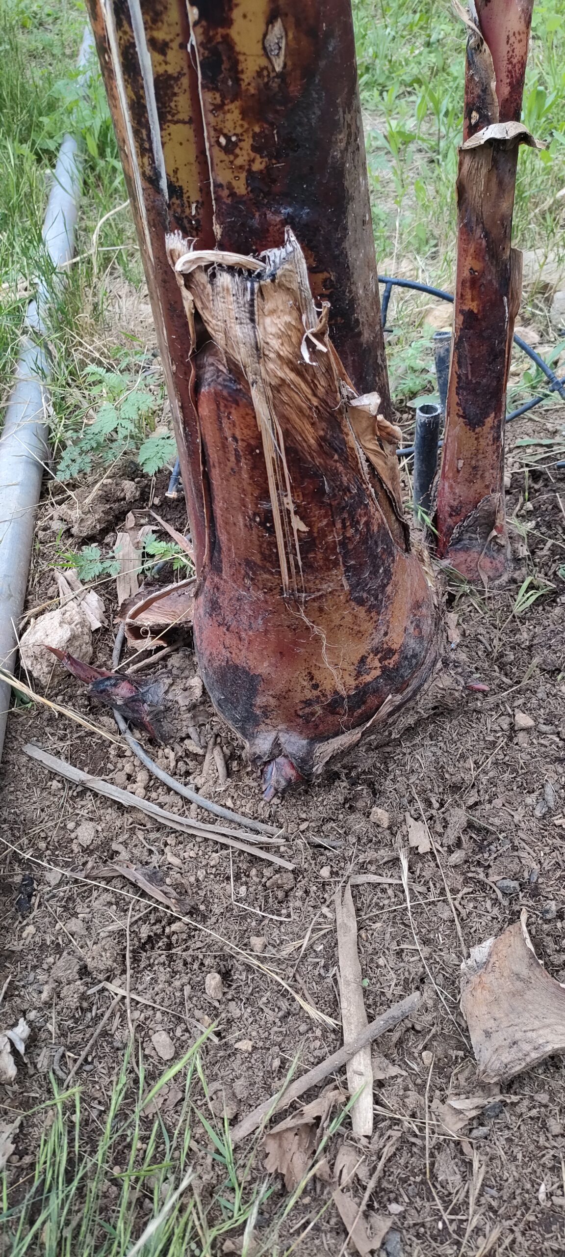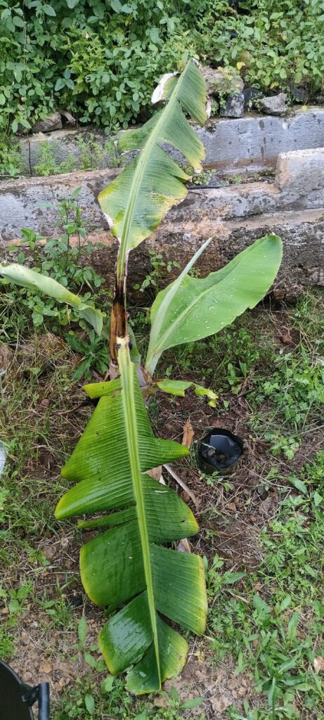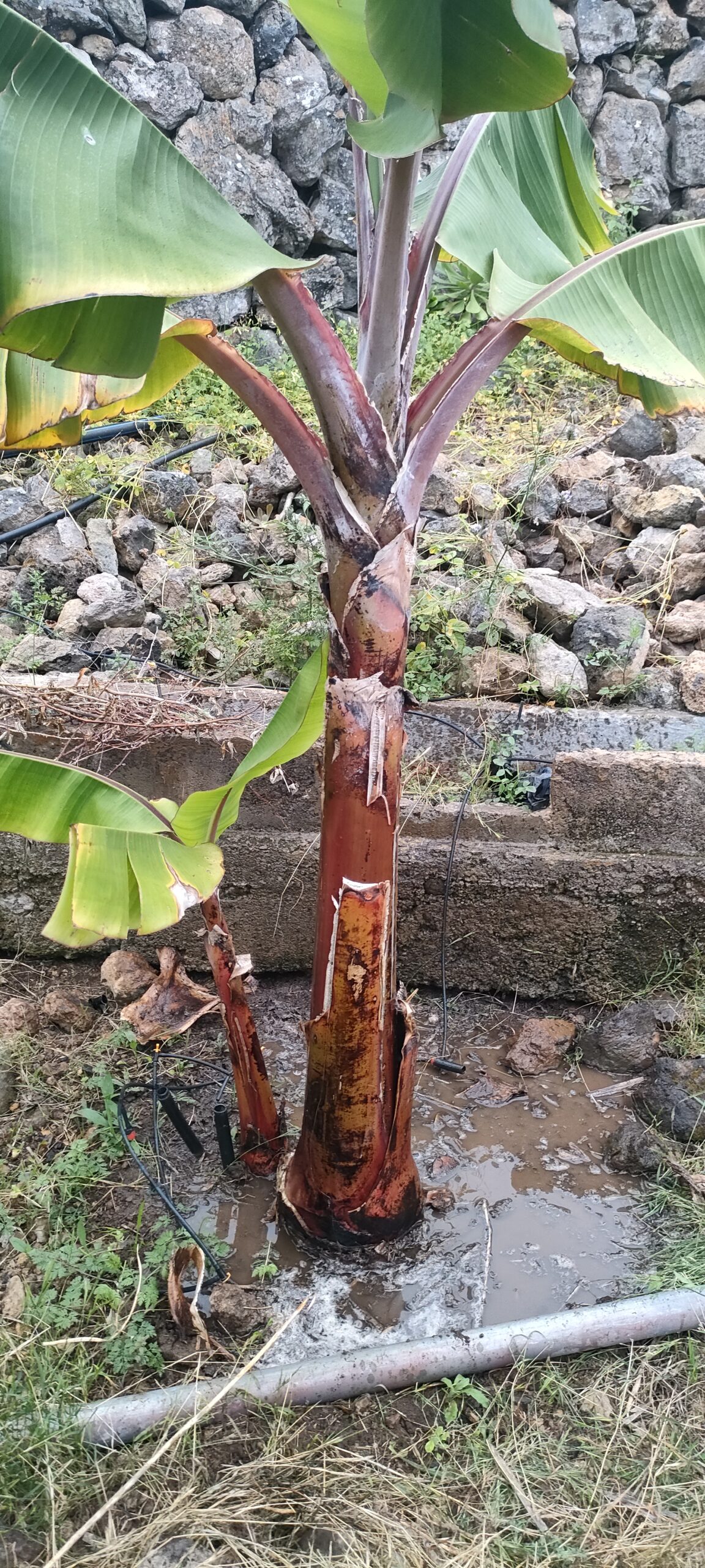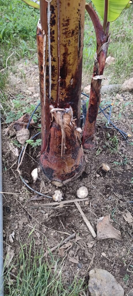 Die 8€ Banane aus der Nachbarschaft fault, treibt aber ein gesundes Ersatzpflänzchen. Gar nicht schlecht, weil der zeitliche Versatz, zu den Anderen, ist erwünscht!