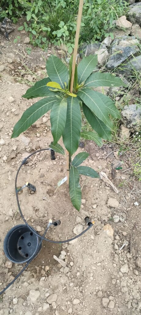 Ein neuer Keitt wurde angeschlossen. Da wächst sogar schon eine neues Doppelstämmchen.