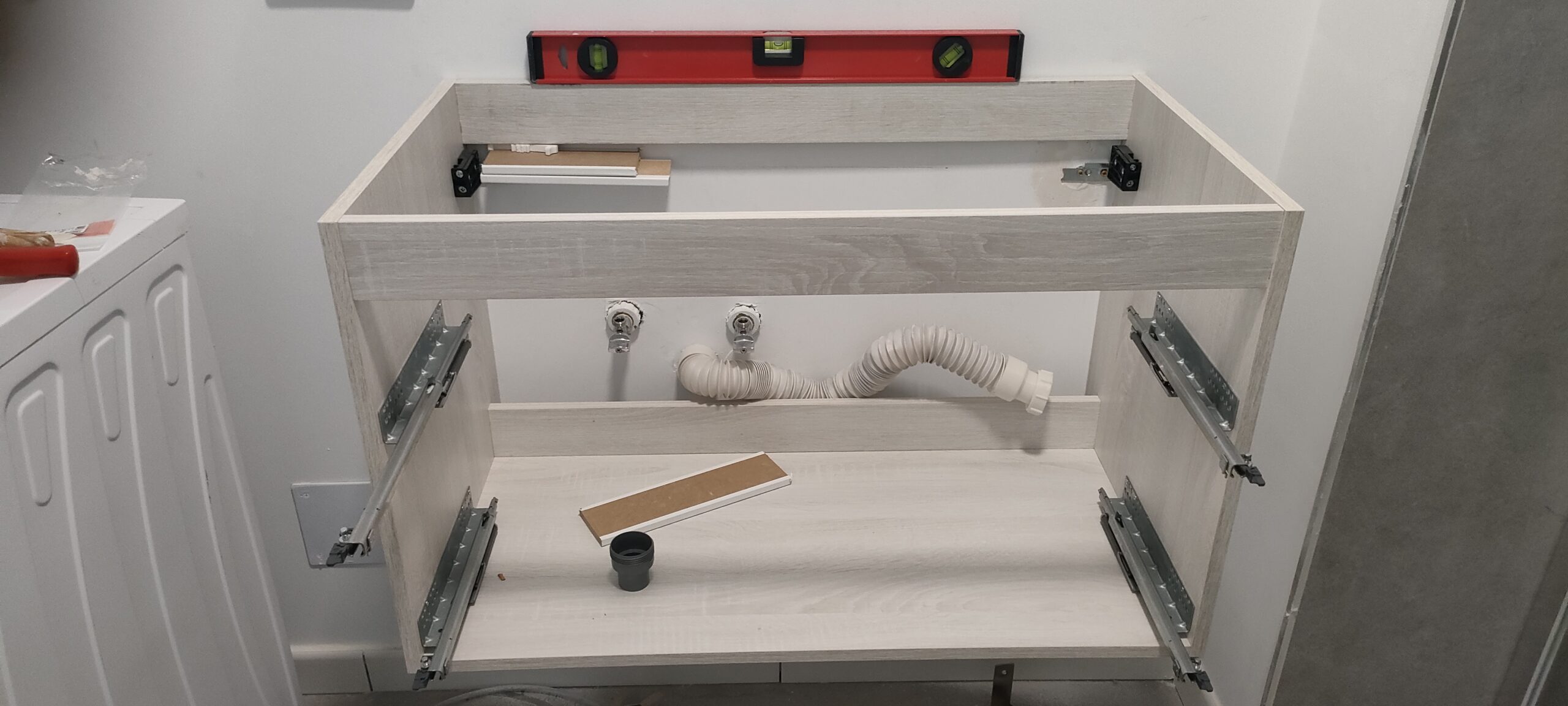 Gestern setzte ich diesen Kasten um, der das Waschbecken tragen soll.