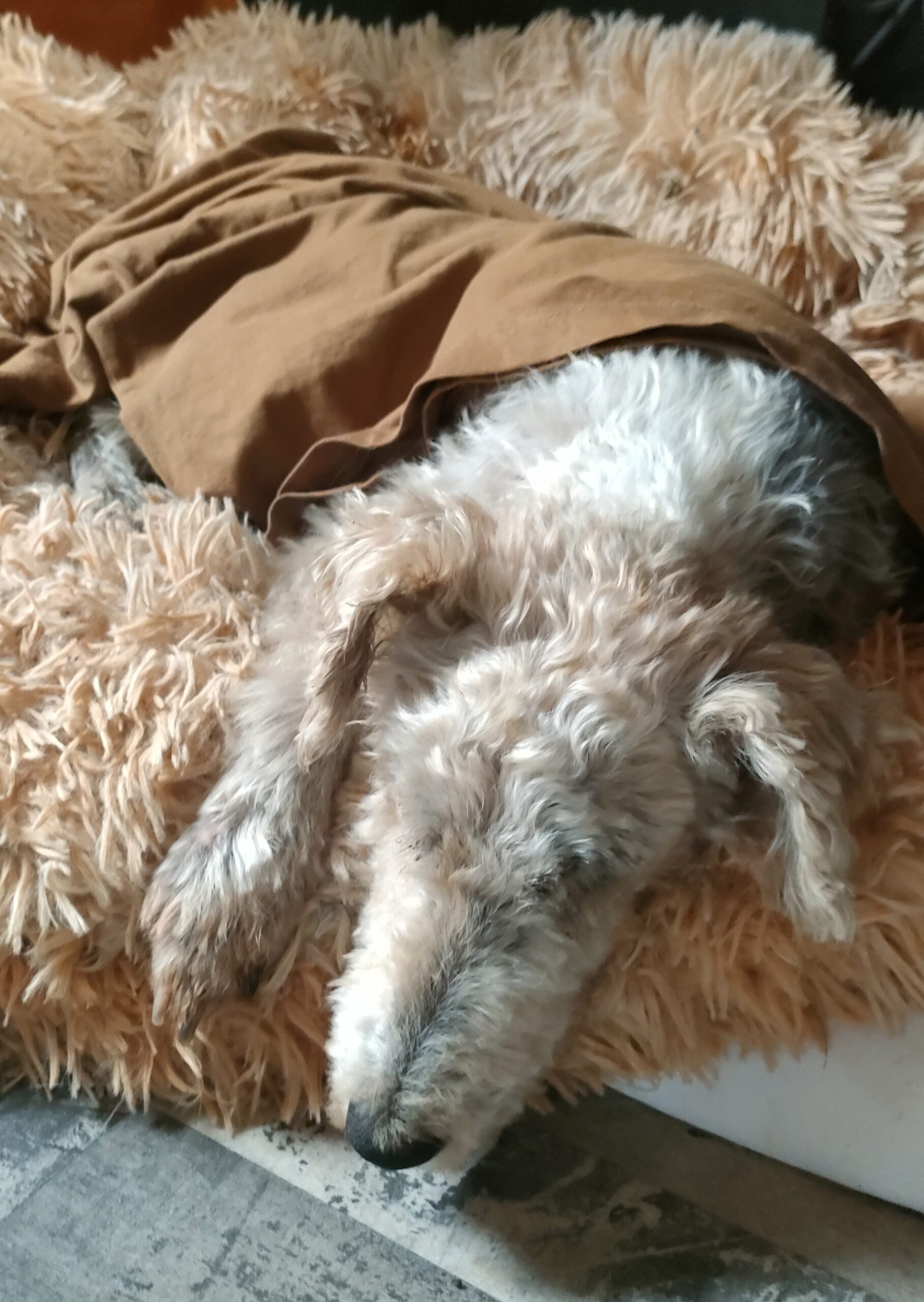 Ich versuche alle nacheinander auf zu peppeln. Mit Coco hatte ich einen schönen Spaziergang. Bimba bekam eine ausgiebige Ohrenpflege und ist bald runderneuert.