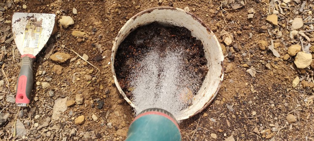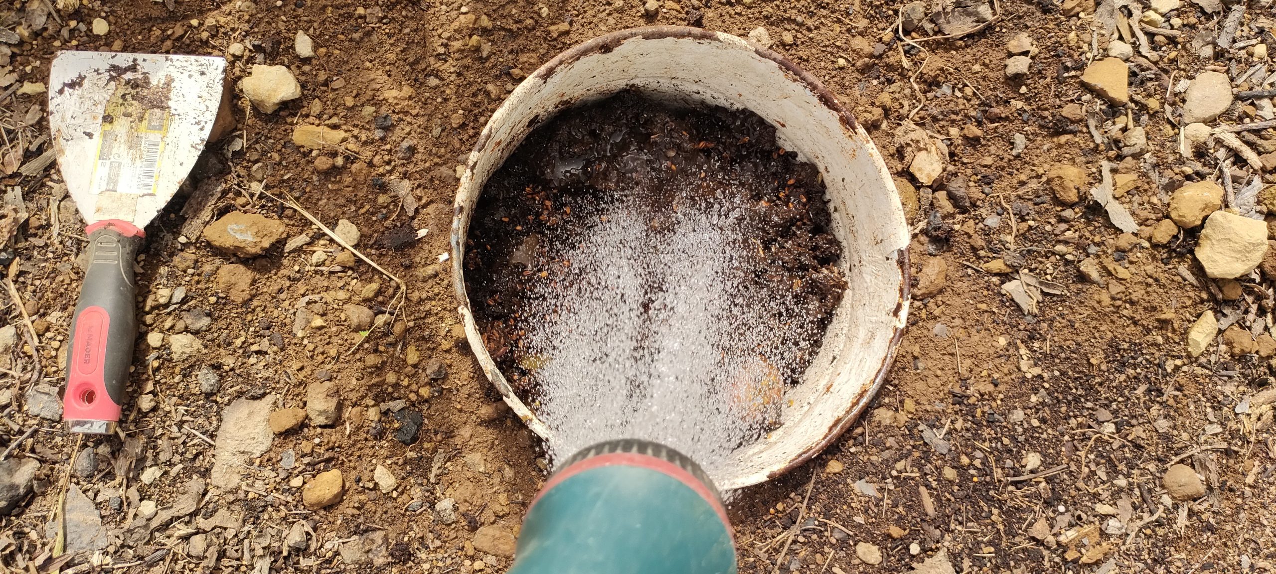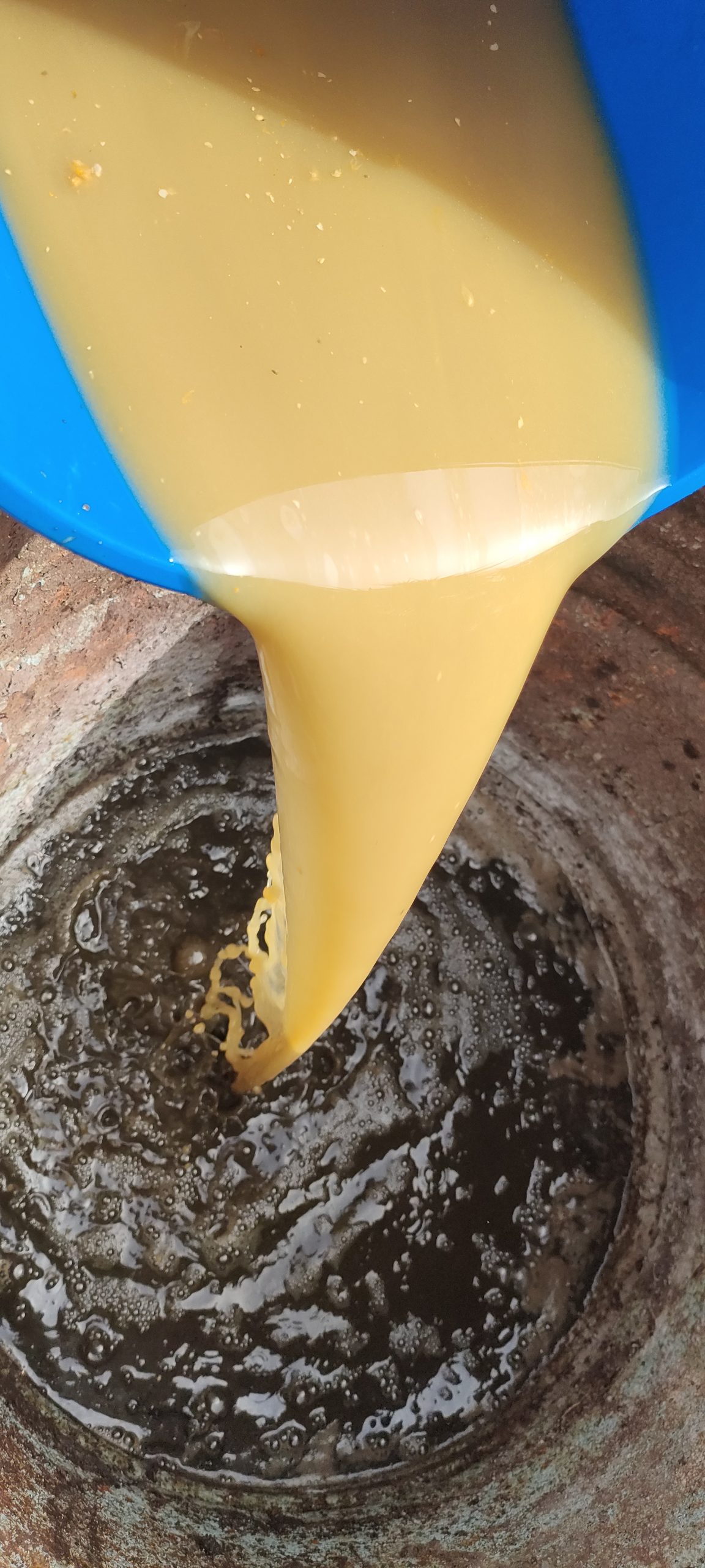 Bokashi Soße in das Jauchefass.