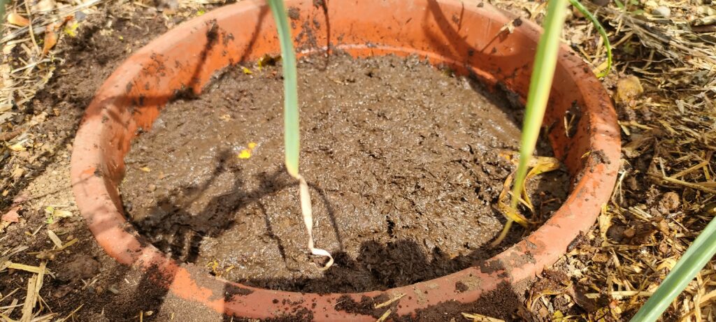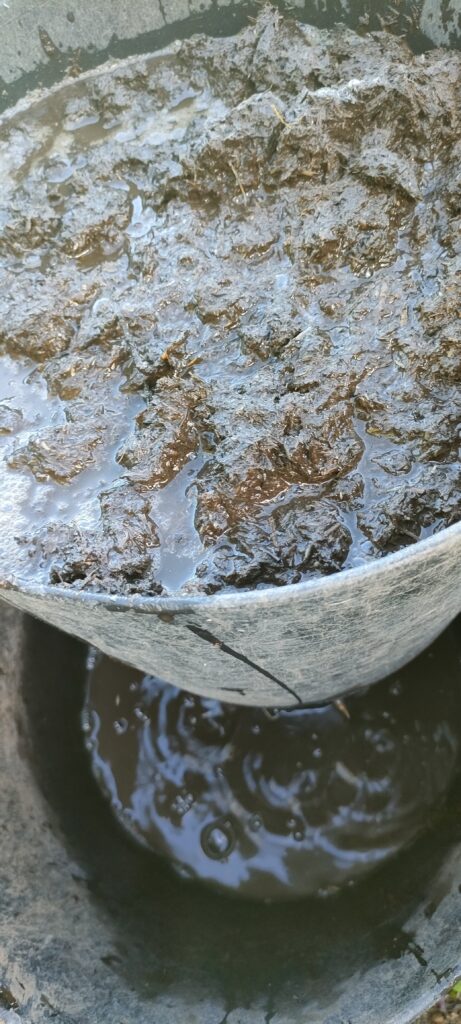 Davor zog ich noch eine Menge Mist und Jauche für die Bananen raus.