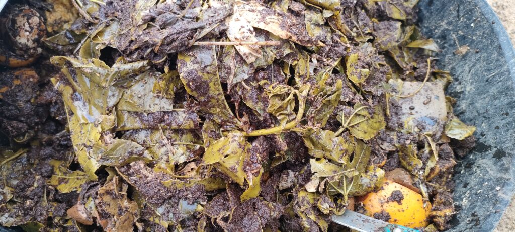 Erinnert ihr euch an die Maracuja Blätter, die ich in den Bokashi gestopft habe, um die Wurmfutterproduktion zu beschleunigen!? 👆