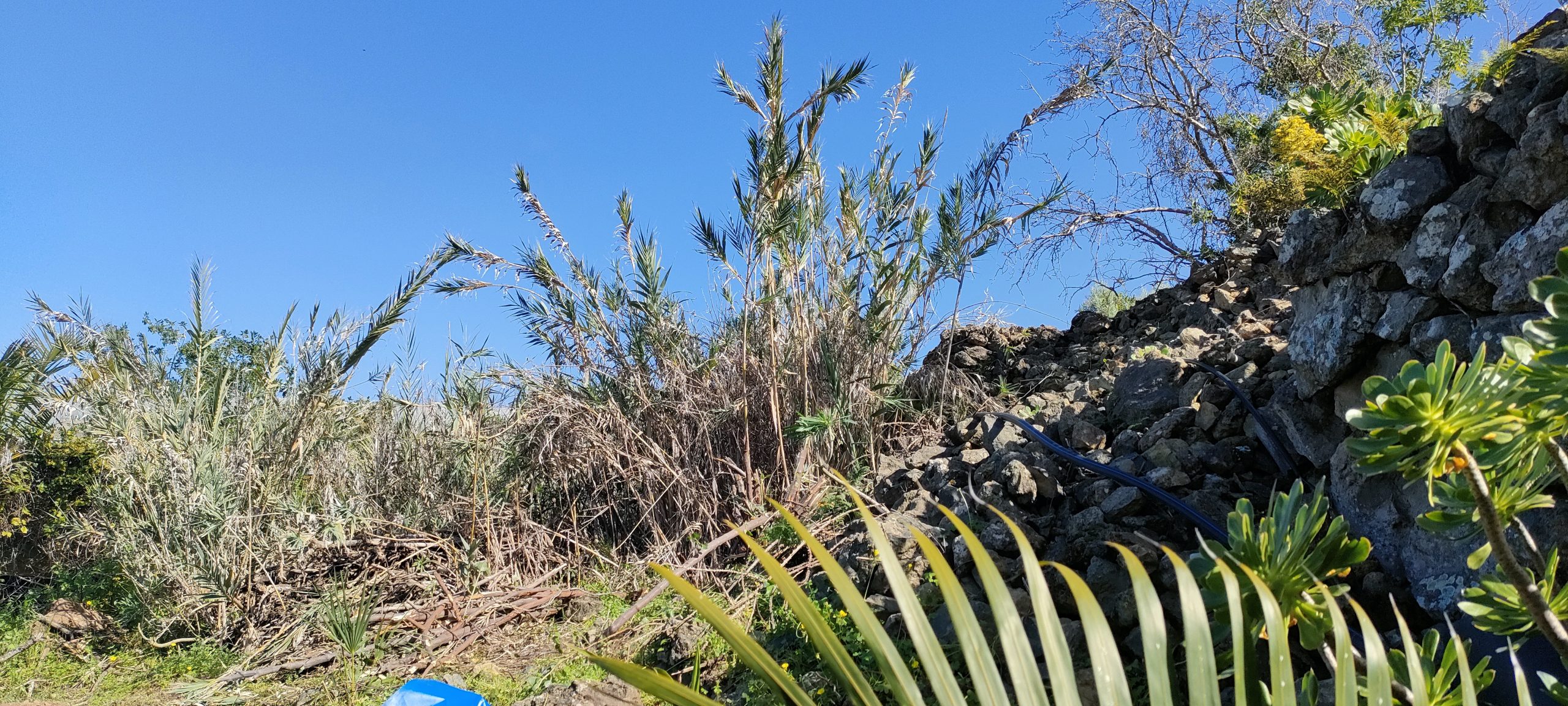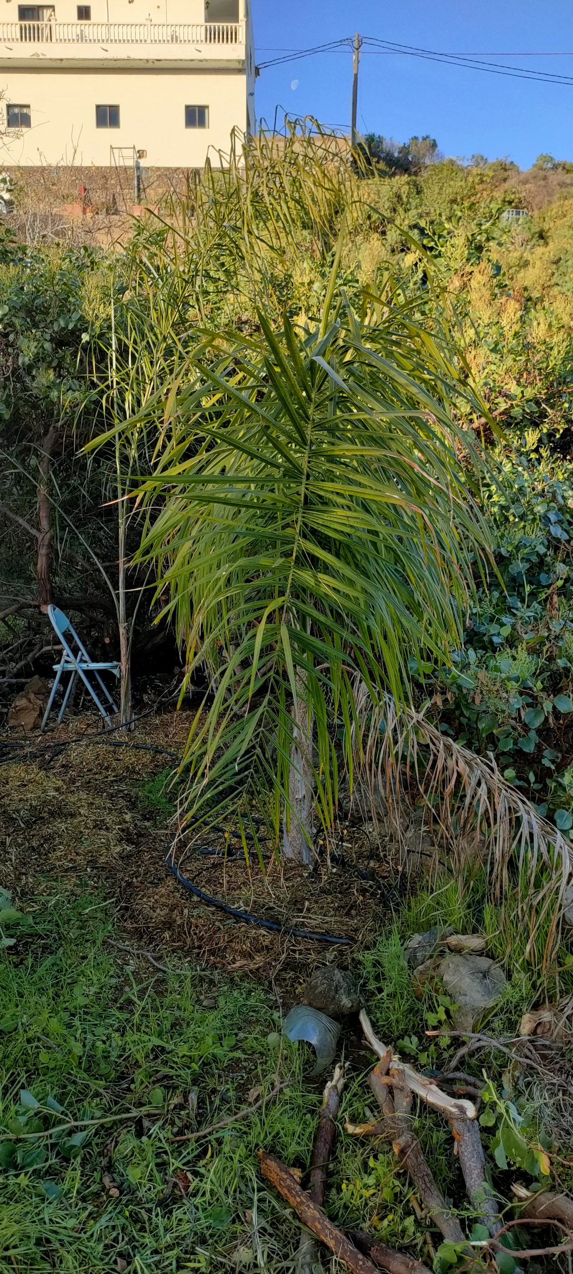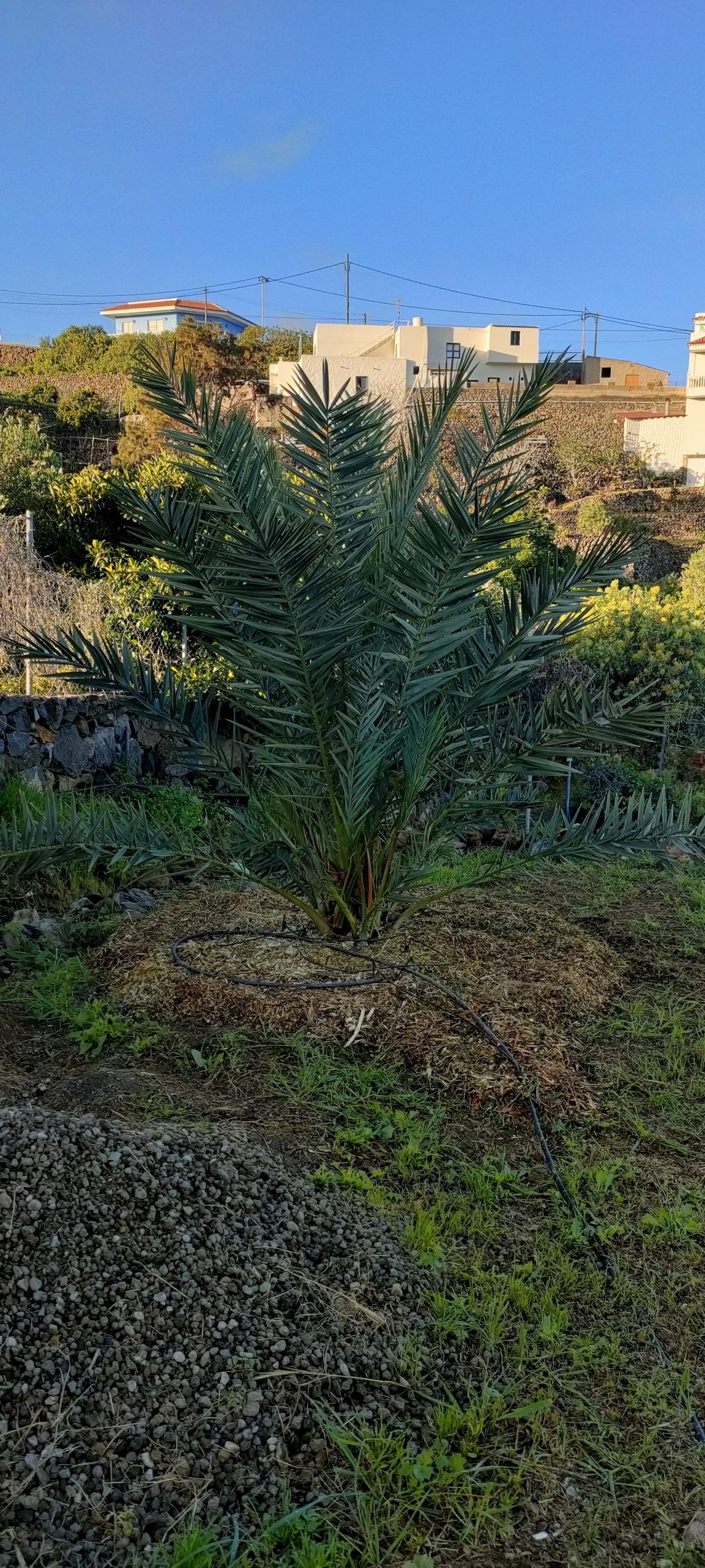 Gleich neben dem Häcksler, mulchte ich noch weitere Palmen, wo man wegen der vielen Tropfschläuche, kaum Mähen konnte.