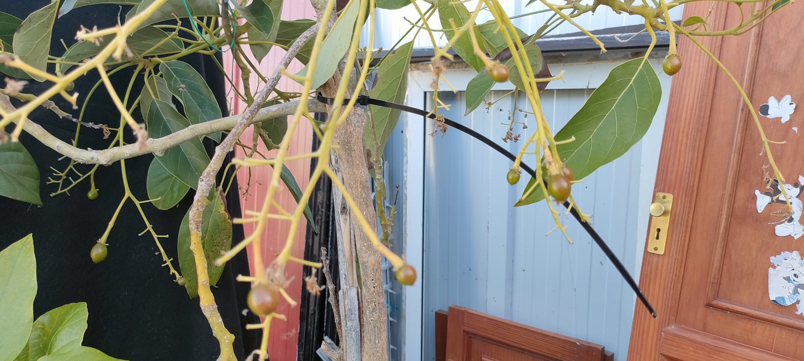 Sein Kollege, vor dem Container, trägt schon wieder 14 kleine Früchte.