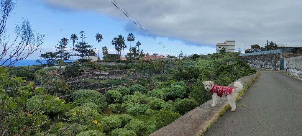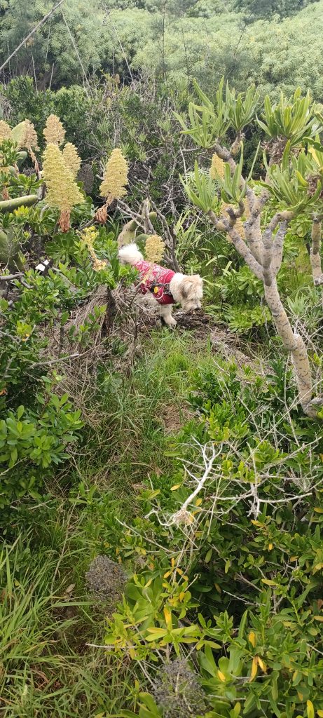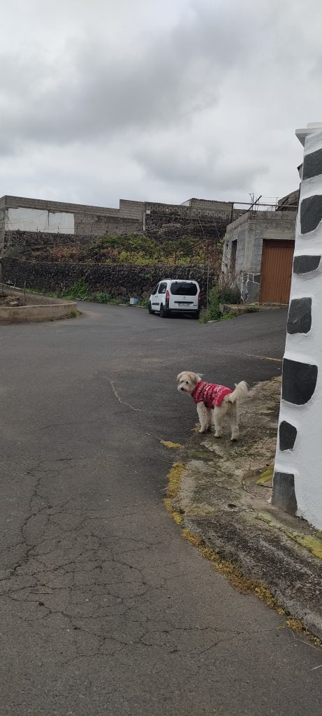 Nur wenn es ganz ruhig ist, kann ich Coco frei laufen lassen. Dann kann ich Bimba langsam führen und so beide Señoras zusammen bringen.