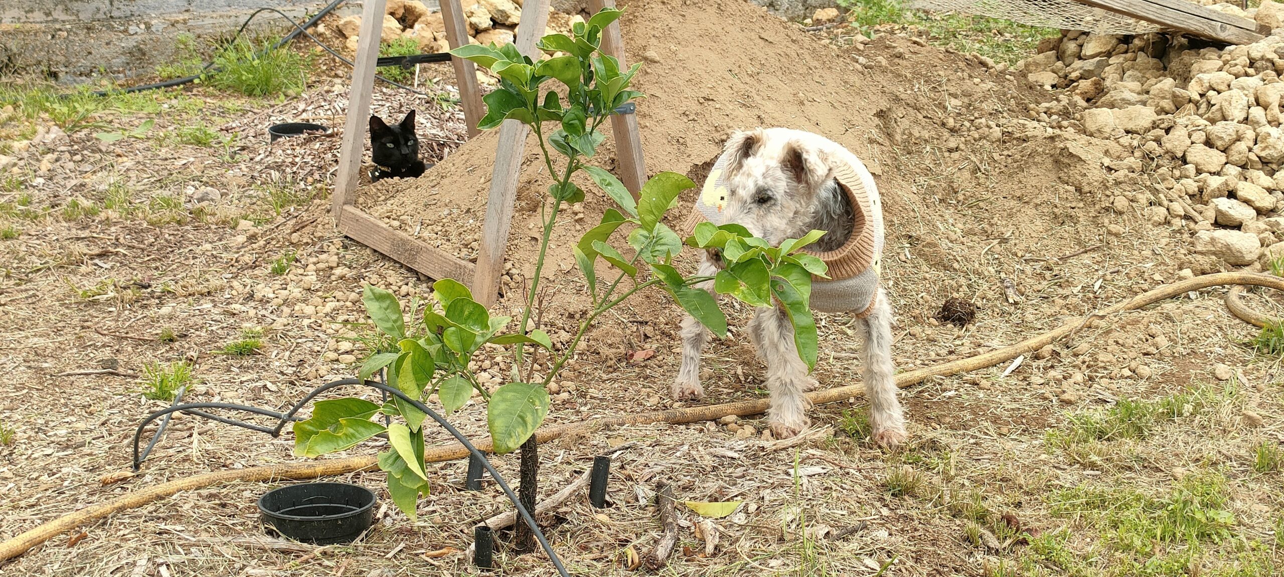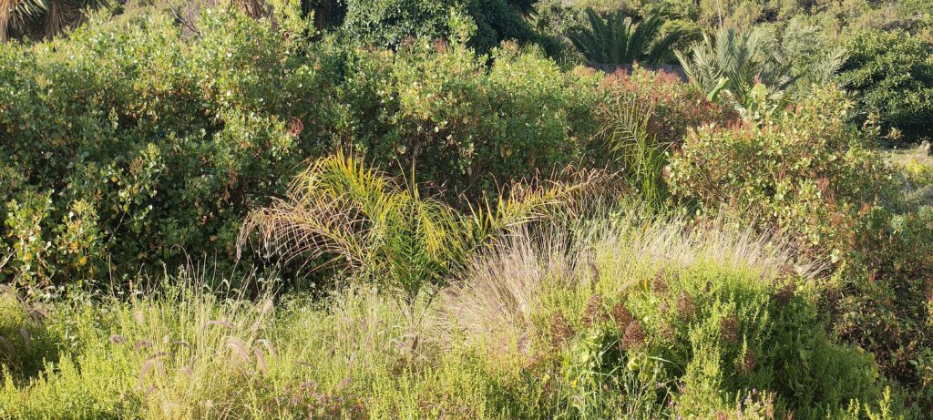 Verteile ich hier Coco Palmen und ganz hinter dem linken Busch stehen die ersten vier. Plus eine Fächerpalme.