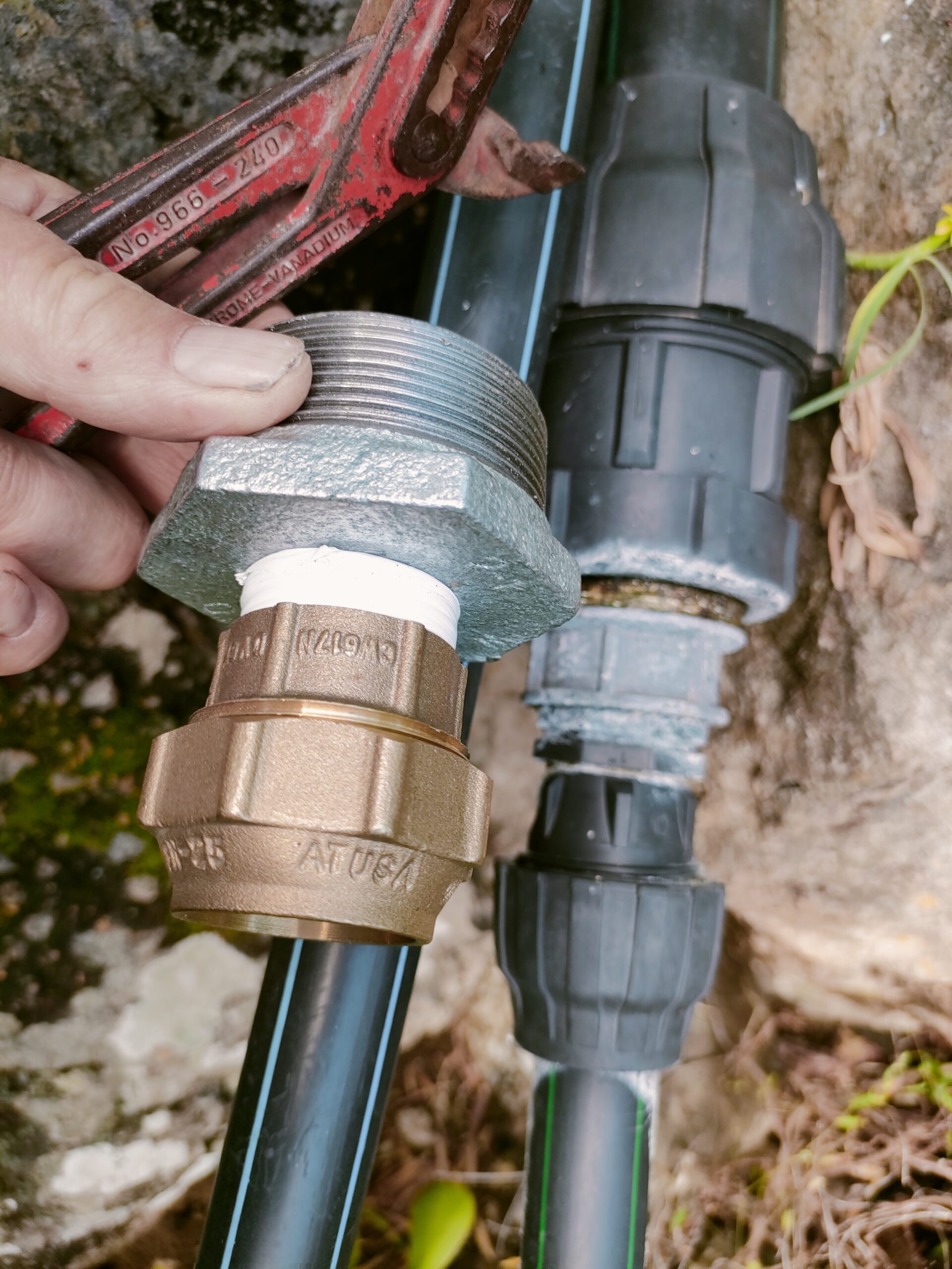 Als ich den Berg hoch kletterte, um die Sicherung einzuschalten, knackte etwas unterm Gras. Das war der Anschluß, der unteren Wasserleitung. Der Zulauf wurde mit einem neuen 16bar Druckschlauch und Metallteilen erneuert. Teuer aber ein unkontrollierter Rohrbruch könnte noch teurer werden. Kurz darauf fiel wieder die Sicherung raus! Wieder, weil Haruki ein Kabel unter dem Vordach runter riss, dessen Stecker ins Wasser fiel. 🤦 Haruki ist technisch sehr versiert und Gewaltbereit! 😄