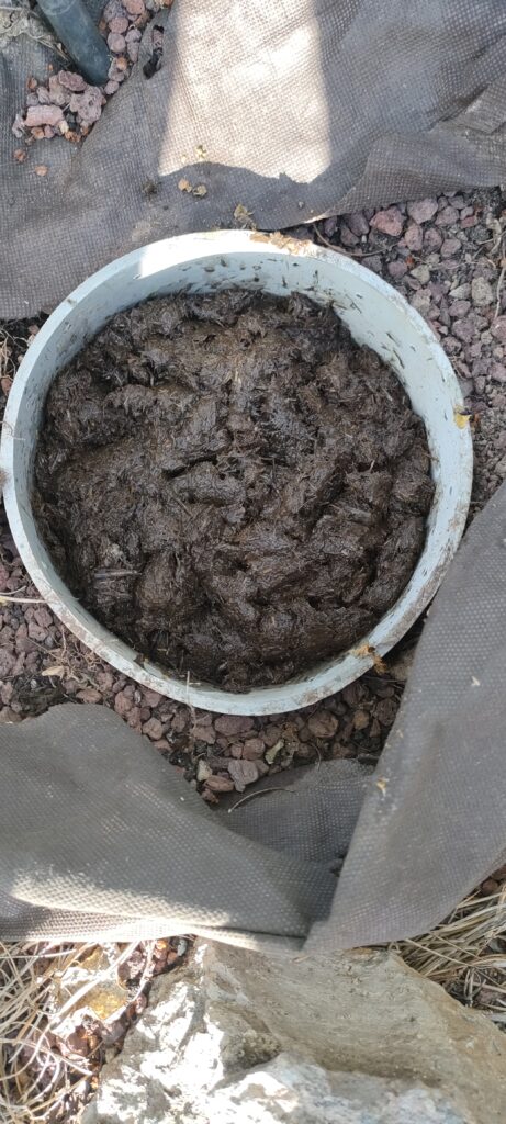 …und gleich mit fermentiertem Pferdemist einschlammen, bevor der bunte Kompost an der Luft oxidiert.