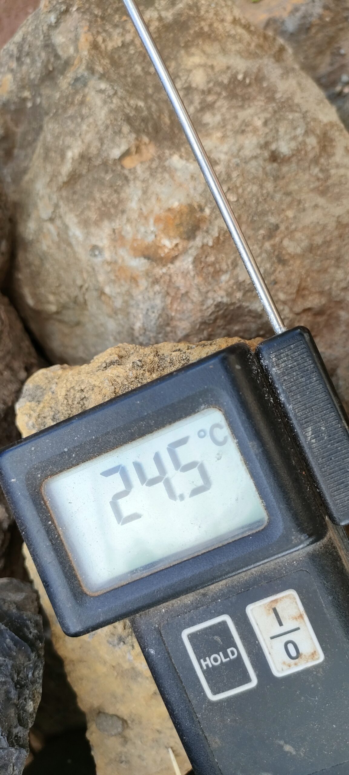 Zum Glück war es schöner als angesagt! Als ich wieder auf meinem Westhang ankam, sah ich, dass Wasser aus der neuen Leitung schoß! 😳 Beim oberen Anschluß, rutschte die Dichtung raus und als ich vorher den Hahn öffnete, kam offensichtlich nur Luft. Deshalb der GöG’s Gravitationsselektiersyphon, der die Luft separiert und über das Schaukeln, dass durch die Druckschwankung entsteht, die Luft wieder, durch den rückwärts laufenden Zähler, zurück schiebt!