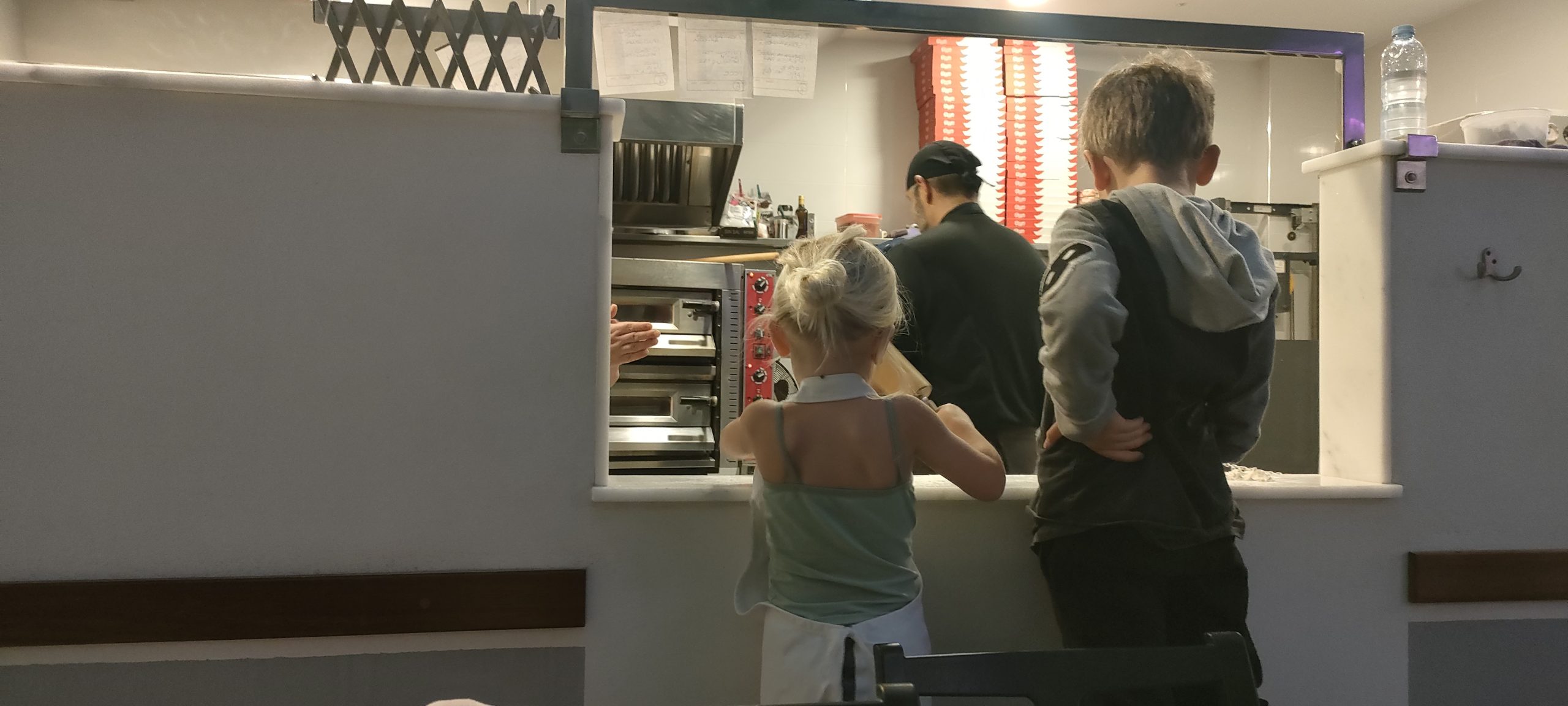 Erinnert ihr euch an meinen jüngsten Schüler? Hier bügelt er mit seiner Schwester, seinen eigenen Pizzateig. 🥰