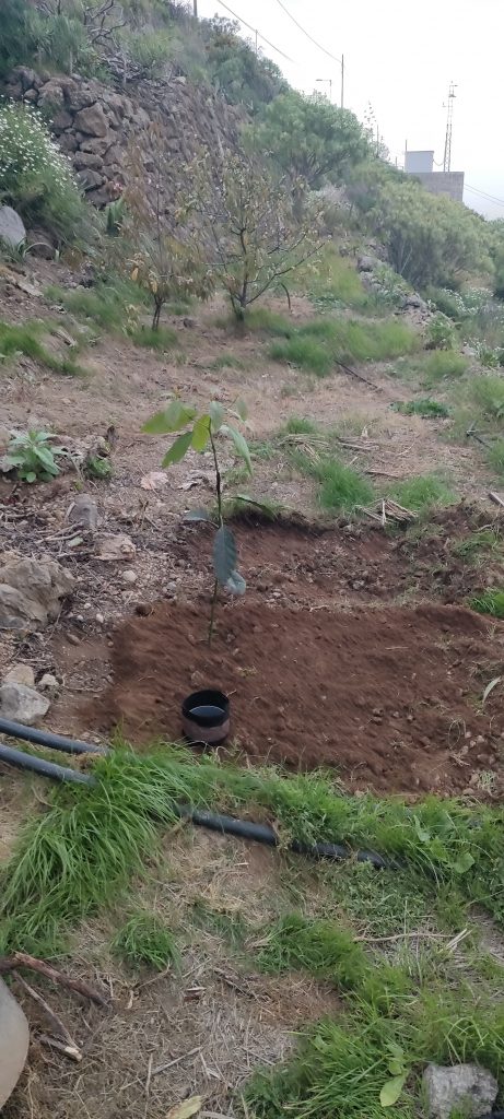 Den ganzen Tag erledigte ich Dinge, wie Mikroorganismen und Kombuchatee, aber am Nachmittag, drückte ich den zehnten Avocadobaum in den Boden.