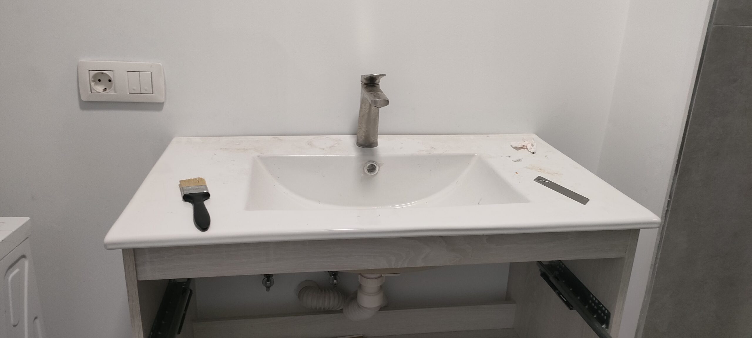 Da ich schonmal da war, hab ich gleich das Waschbecken fertig gemacht und Spuren des Umbaus übermalt.